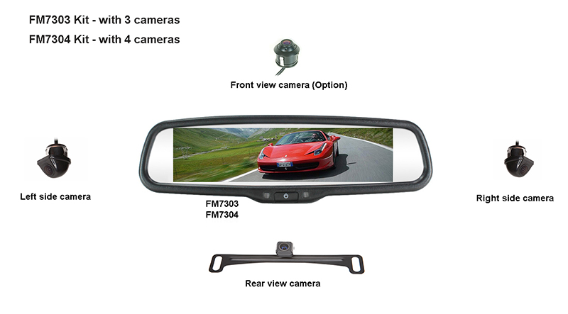 | - 7.4" Full screen mirror image with 3 cameras |