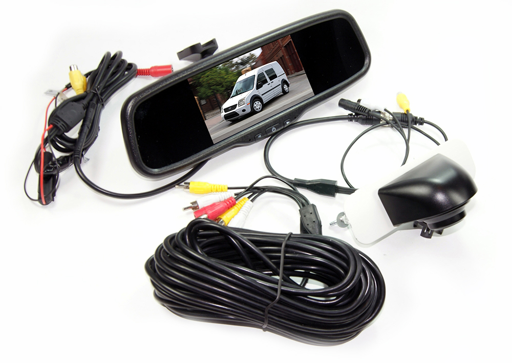 **Optio 2-- 4.3 i ch Replaceme t mirror LCD mo itor combi ed with OE Fit FT1000L plate light replaceme t camera