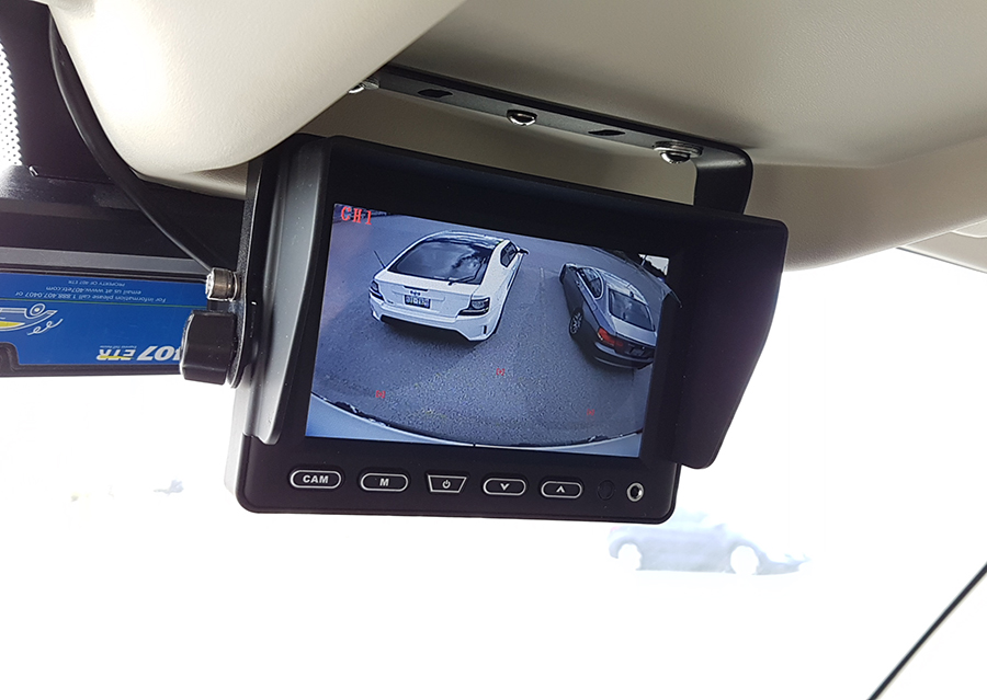-With 5" OEM style rear view mirror replaceme t LCD mo itor with Dodge OEM fit bracket
